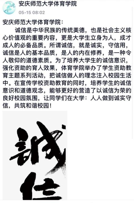 为增强大学生诚信意识,引导学生树立正确的消费观、荣辱观、价值观。根据学校《关于开展2021年学生资助诚信教育主题活动的通知》要求,我院组织开展“诚信资助助学筑梦 勤奋刻苦励志成才”为主题的资助诚信教育宣传月活动。