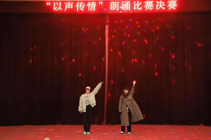 伴着婉转的音乐旋律,和着铿锵有力的节拍,生命科学类专业2021(8)班的胡纯冉正声情并茂地朗诵着《青春中国》,一句句发自肺腑的真情表达,倾诉着对祖国母亲、对中国共产党的感激与热爱。此外,旅游管理专业2021(1)班的吴冬和郭雷以话剧的形式为大家带来《与妻书》的朗读,生动再现了林觉民对家庭和祖国的热爱,让大家眼前一亮。选手们精彩的表演赢得台下评委和观众们的阵阵掌声。