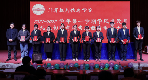 12月21日,计算机与信息学院在图书馆东报告厅举行2021年下半年学风建设月总结表彰暨考风考纪教育动员大会。学院全体领导、全体辅导员参加会议,2021级全体学生及2018、2019、2020级学生干部参加会议,会议由党委副书记江晋剑主持。