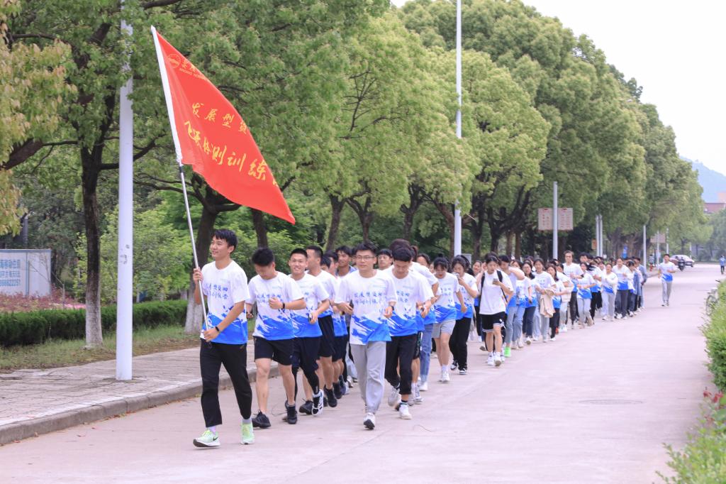 开营仪式结束后,全体学员在指导员的带领下进行了校园慢跑热身,并在操场进行了第一次体测模拟测试活动。
