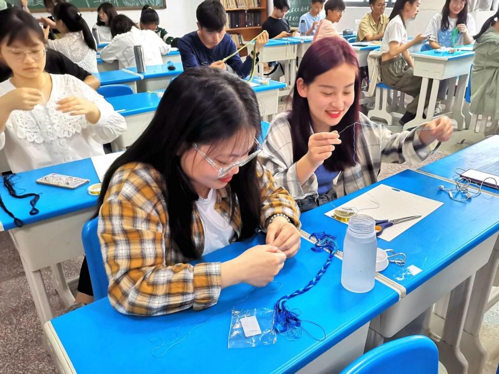 外国语学院子衿汉风工作室采取亲手制作非遗艺术作品的方式,使劳动教育与美学教育完美结合,在提升学生的审美情趣的同时,提高学生的劳动实践能力,让同学们在劳动中收获探索新事物的乐趣。(撰稿:袁星辰 摄影:马雨荷 审核:夏斐)