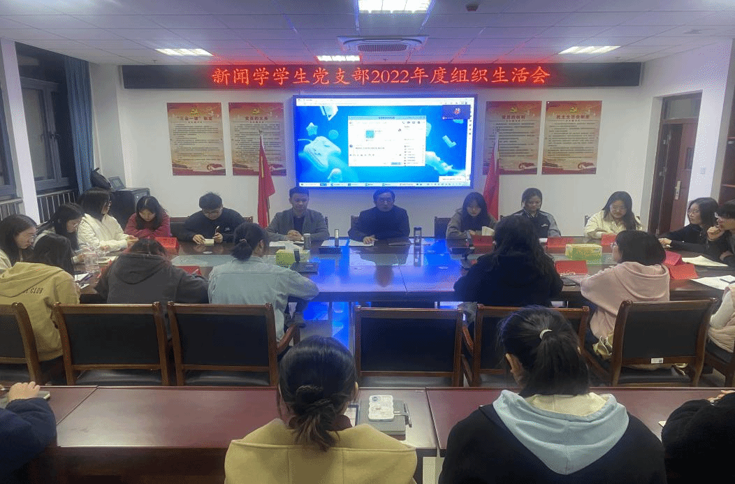 根据学校党委工作部署,3月13日,传媒学院新闻学学生党支部在k408召开2022年度组织生活会暨民主评议党员活动,新闻学学生党支部全体党员参加会议。传媒学院党委书记詹德全到会指导。