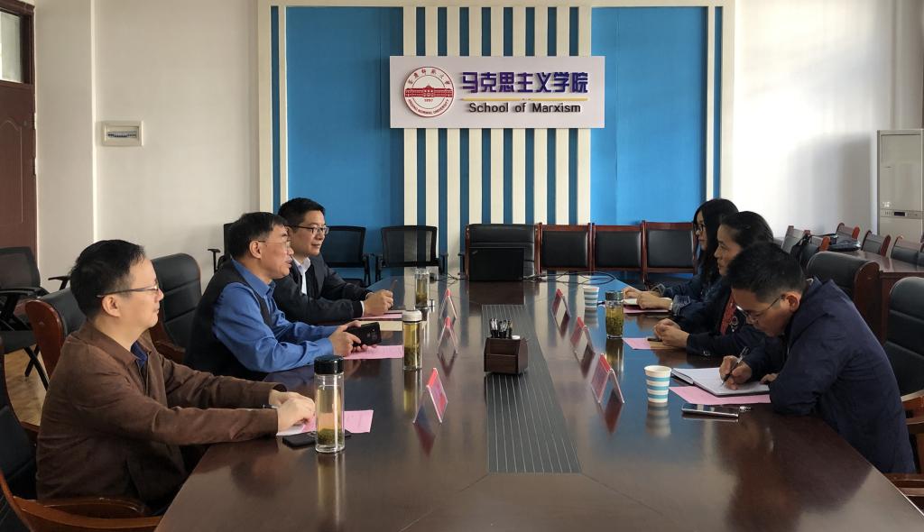 10月12日下午,安徽工程大学马克思主义学院党总支副书记、院长吴月红,副院长李海涛等一行三人来beat365官网考察交流,马克思主义学院院长罗本琦、副院长张俊生和和科研秘书参加了交流活动。