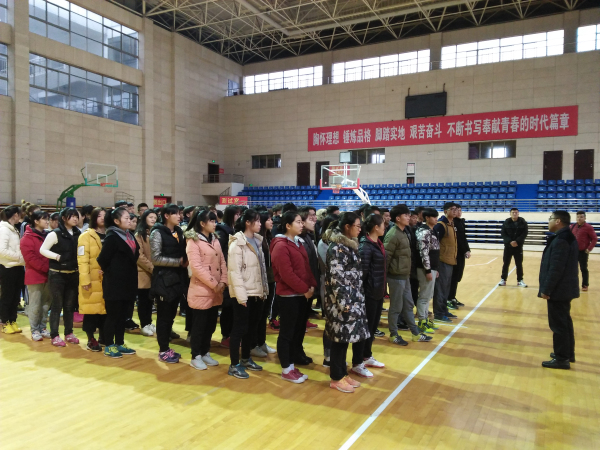 12月21日中午,beat365官网龙舟队队员选拔工作在校体育馆室内篮球场举行,体育学院副院长、校体艺委副主任章翔作动员讲话。