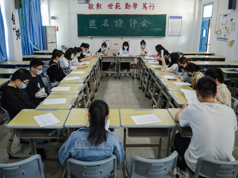 “我觉得《芽》这首短诗很有春天气息,像是个漫步校园有感而发的文艺女生写的呢。”“这首《茉莉三章》用词清新,给人很舒服的感觉,作者应是个心思细腻的男生。”……4月10日 ,人文学院大学生白鲸文学社在教学楼310教室举办了一场匿名评诗会活动。
