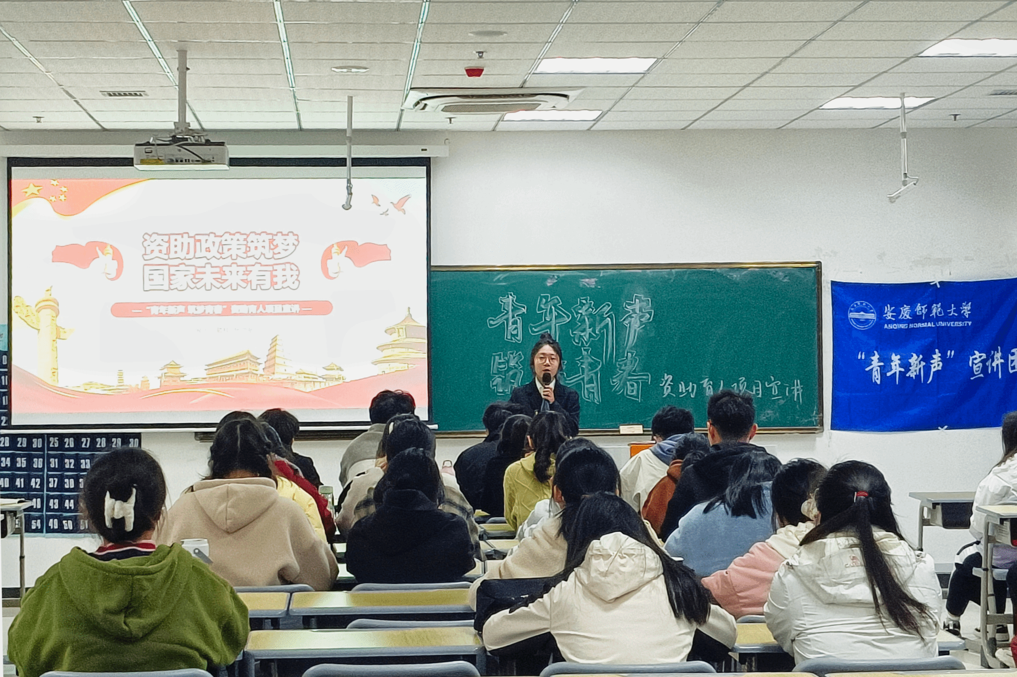 11月24日,马克思主义学院在Q楼308教室举办“资助政策筑梦,国家未来有我”主题宣讲活动,本次活动由“青年新声”宣讲团成员进行宣讲,国家励志奖学金和国家助学金获得者参加宣讲。