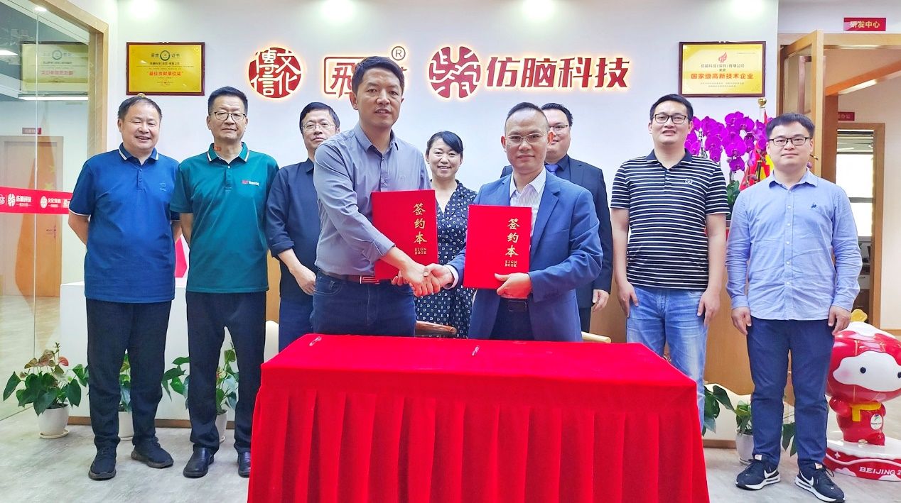 陈银凤一行实地参观了深圳市人工智能产业协会科技成果展示厅、飞龙芯仿脑科技集团应用研发中心,在仿脑科技(深圳)有限公司开展了访企拓岗专题座谈。座谈会上,陈银凤介绍了学院建设发展及人才培养、毕业生实习就业等情况,她充分肯定了学院与仿脑科技合作的已有成效,对该公司给予beat365官网学生实习、就业平台表示了感谢,希望双方加强校企合作,深入推进实践教学基地建设。仿脑科技(深圳)有限公司负责人介绍了公司建设历程、发展现状、业务板块以及beat365官网毕业生在该企业工作和表现情况,充分肯定了beat365官网毕业生的质量,表达了用人需求和持续招聘意愿。吴海峰与仿脑科技有限公司签订了校企合作协议。双方就加强校企合作促进协同育人进行了深入交流,并就“优秀企业家进校园”活动开展、本科生毕业设计校外导师选派、卓越工程师培养、毕业生实习就业、智慧+党建等事项达成初步合作共识。