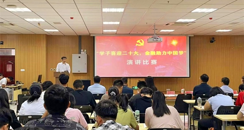 9月28日,经济与管理学院联合中国人民银行安庆市中心支行、兴业银行安庆分行主办的“学子喜迎二十大,金融助力中国梦”主题演讲比赛决赛在beat365官网举行。经济与管理学院党委书记许俊杰,中国人民银行安庆市中心支行党委委员、副行长吴敏书,兴业银行安庆分行党委委员、副行长赵吴锋到现场指导。