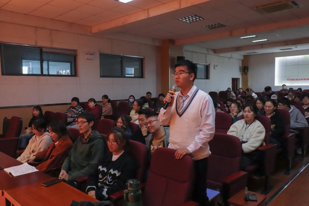 “老师您好,我想问是什么力量让您一直坚持绘画呢?”作为学院的一名入党积极分子,英语专业2020(7)班的张子杰全程聚精会神听完了报告会,在得到“坚持热爱,永不放弃”的回答之后,张子杰坦言,以后遇到困难自己也不会轻易放弃,将初心与热爱坚持到底。
