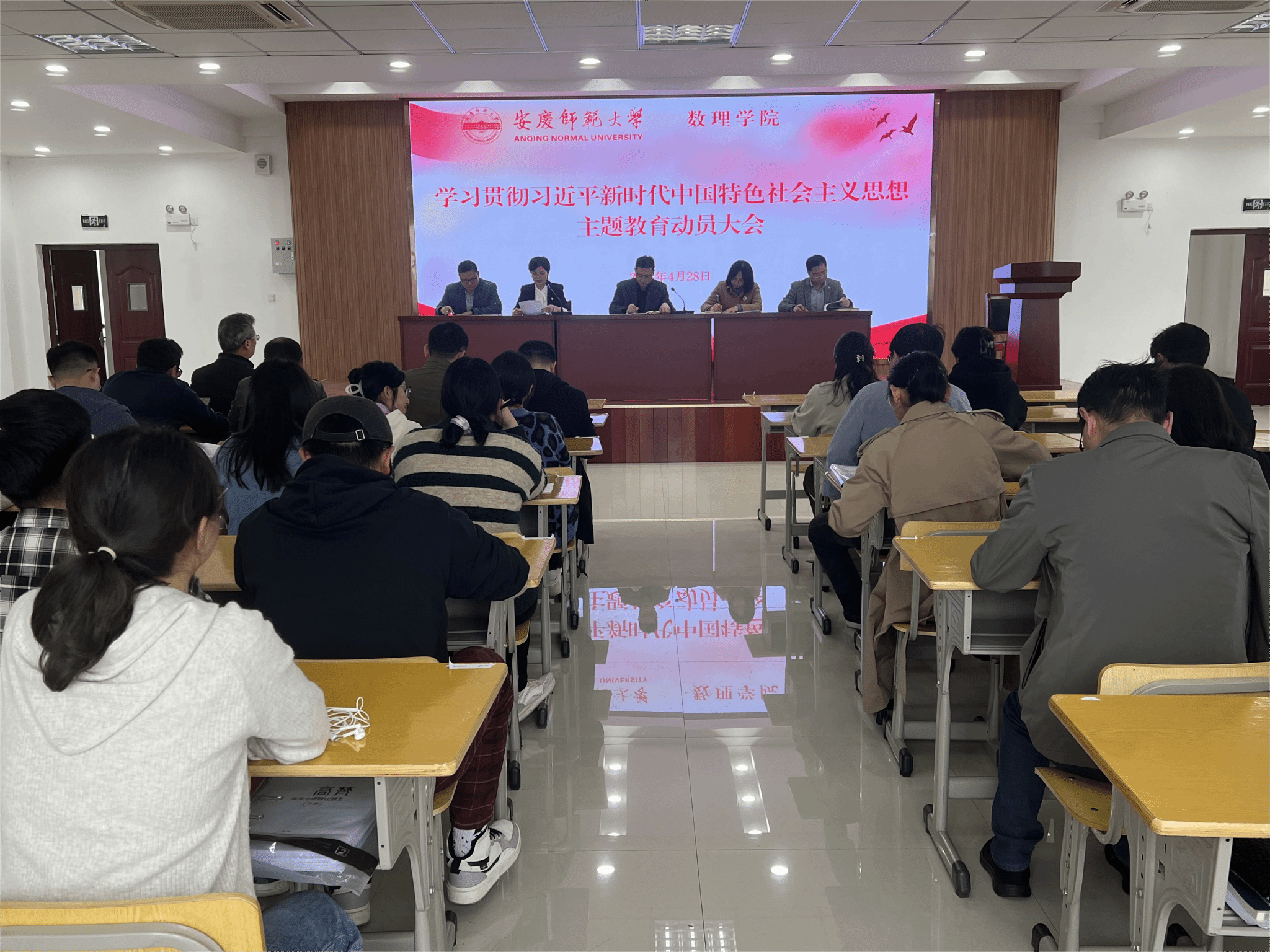 4月28日,数理学院召开学习贯彻习近平新时代中国特色社会主义思想主题教育动员大会。学院党委书记陆健作动员讲话,会议由学院党委副书记彭芳珍主持,学院师生党员参加会议。