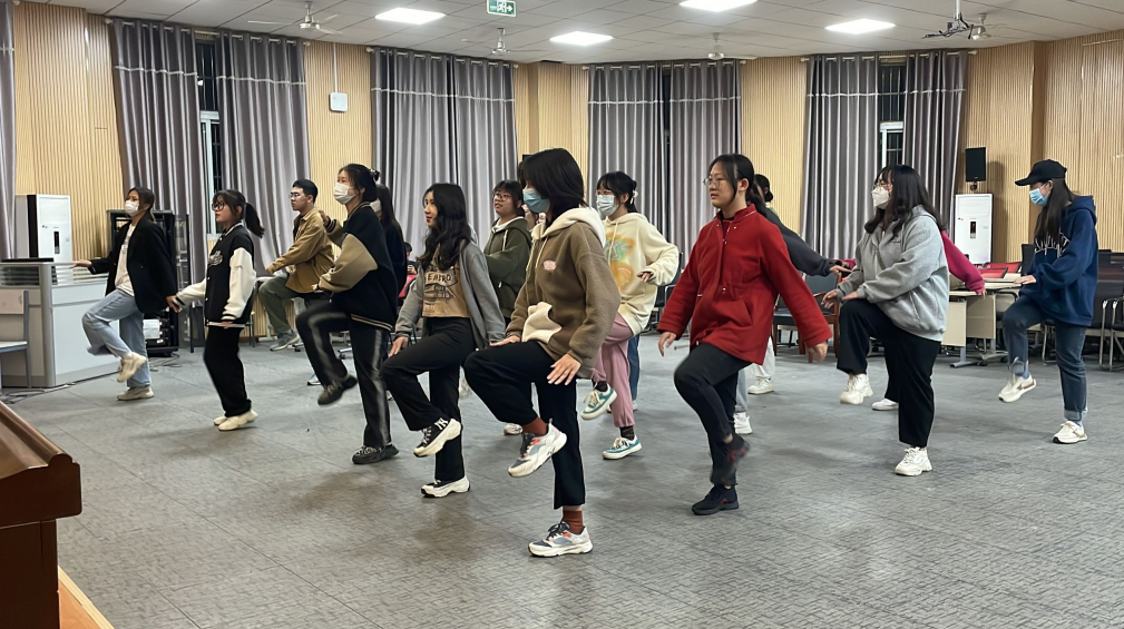 动感的音乐响起,美术学院报告厅内40余位学生正跟着视频齐跳《本草纲目》健身操。近日,美术学院学生会陆续组织3场健身操学习活动,学生们纷纷来到报告厅跟随大屏幕舞动起来,感受运动的乐趣。