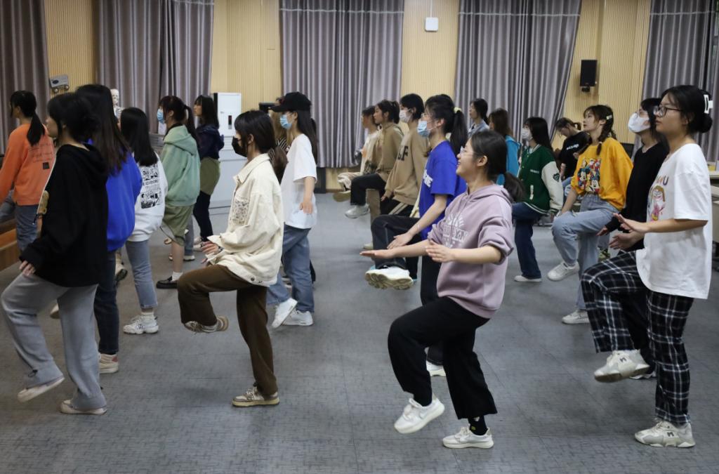 “健美操是一项集舞蹈、音乐、健身、娱乐于一体的娱乐体育项目,我们选用了网红刘畊宏《本草纲目》健身操进行视频跟跳学习,希望能够以此带动同学们参与运动的积极性。”美术学专业2021级(2)班的学生毕唯依作为活动负责人介绍,“这套健身操运动量大、节奏性强、动作多样,是时下热度很高的健身方式,希望同学们在跟跳过程中能够有所收获。”