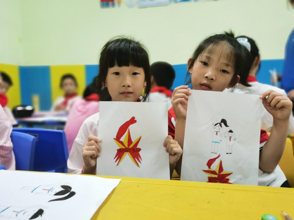 “本次绘制队旗队徽的活动旨在拓展孩子们的知识面,引导孩子们增强党性修养。”据团队成员王可欣介绍,除了普及少先队的相关知识,他们也帮助小朋友们掌握了红领巾的佩戴方法和队礼的正确姿势。“这样一堂特殊的‘临摹课’让小朋友们进一步了解了中国少年先锋队基本知识,同时加深了他们对‘中国少先队队员’这一光荣身份的认知,努力成长为担当民族复兴大任的时代新人,做共产主义事业的接班人。”