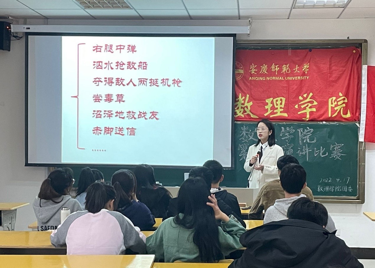 比赛中,选手们紧紧围绕“讲中华好故事,做时代好青年”主题演讲。他们用一个个革命英雄和追梦人的故事重温党的光辉历程,以一段段热情洋溢的语言讴歌党的百年奋斗重大成就和历史经验。经过紧张激烈的比赛,2021级数学与应用数学2班的学生张志成荣获比赛的一等奖、2021级物理学2班的学生李文静获得二等奖,2021级应用统计学1班的学生董依婷获得三等奖。