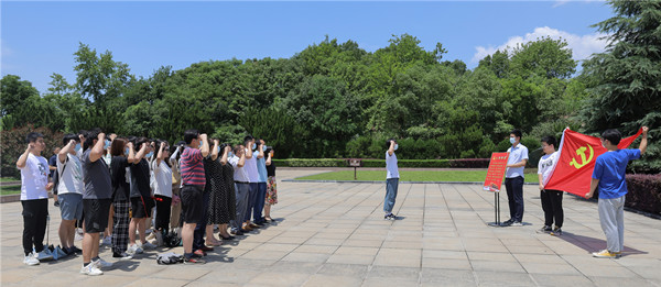 惊雷浮雕、陈独秀铜像、新青年碑刻……走过长长的阶梯,围在陈独秀先生墓前,怀揣着无比崇高的敬意,师生们恭敬地向墓碑三鞠躬,用行动表达对先生的敬仰之情。“我志愿加入中国共产党,拥护党的纲领,遵守党的章程,履行党员义务……”师生在重温入党誓词中,进一步强化了党性修养,增强了斗志。