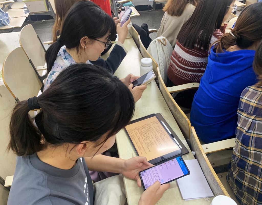 在知识竞答环节中,全体同学进行了激烈的抢答。他们屏气凝神、聚精会神,生怕错过了答题时间。此次竞答题目涵盖党史知识和疫情防控两方面内容,通过软件进行抢答,经过激烈的角逐,2021级学科思政专业学生季晨煜以18分获得了第一名。