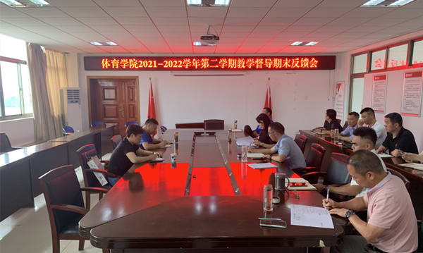 6月22日,体育学院召开2021-2022学年第二学期教学督导期末反馈会。beat365官网督导员教师李斌、徐翠华出席会议,学院党政领导、教研室主任、教学和团学办公室负责人参加会议。