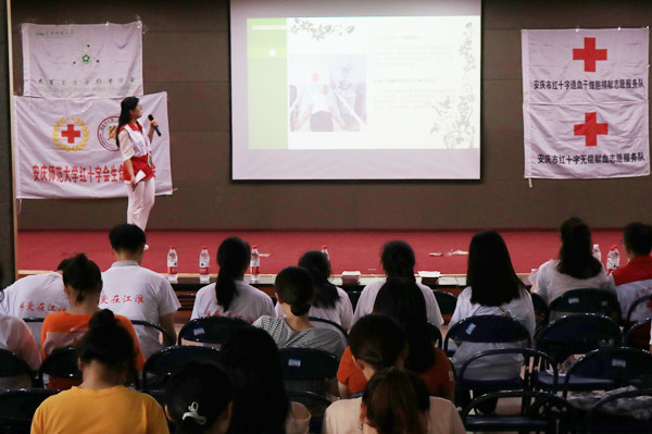 9月19日下午,大学生生命科学协会与安庆市红十字会、安庆市无偿献血者协会、安庆市红十字中心血站合作,开展“三献”讲座。