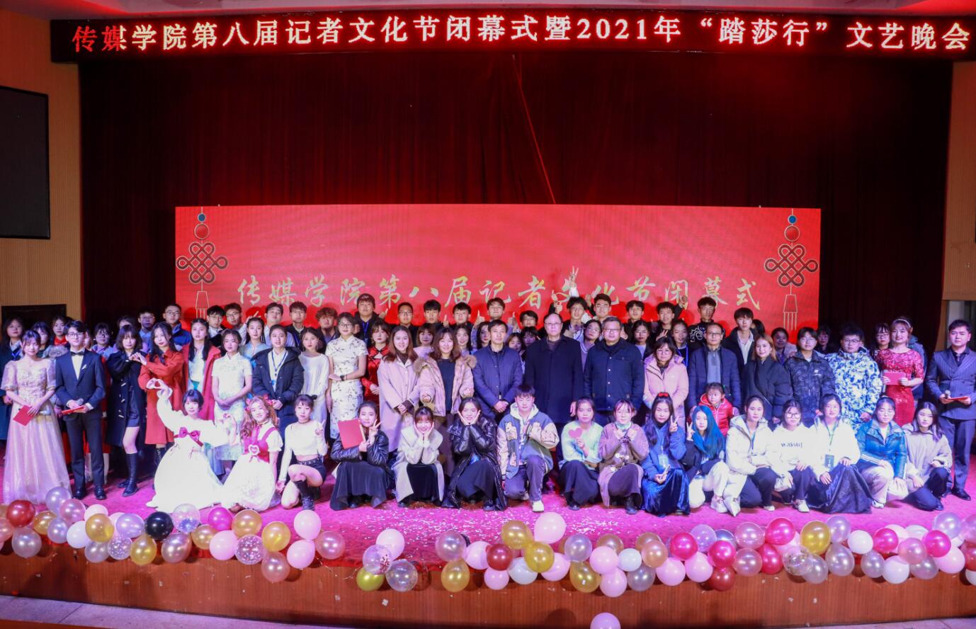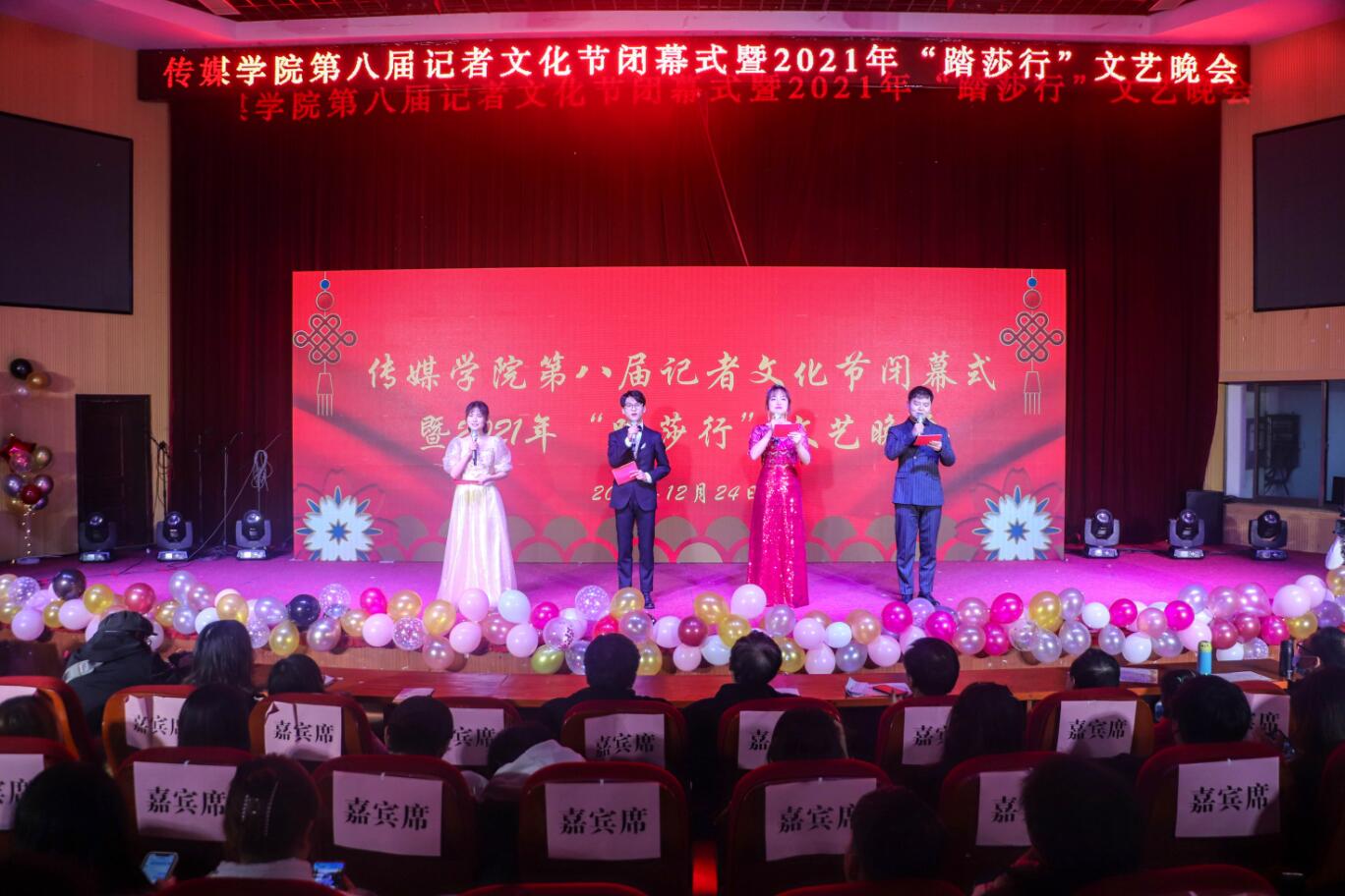洋溢着青春激情的歌曲《少年》、描绘江南静谧的乐器合奏《烟雨行舟》、动感曼妙的舞蹈《dumb dumb》......12月24日,传媒学院举办第八届记者文化节闭幕式暨2021年“踏莎行”文艺晚会。学院党政班子成员和部分教师出席此次晚会,与400余名学生共赏一场视听盛宴。