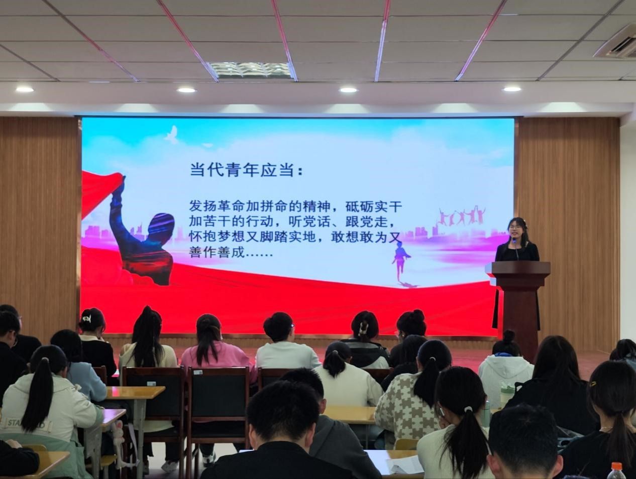 本次比赛主题为“奋斗者,正青春”,参赛选手们用叙说先锋人物的动人故事、分享自己的真实经历、抒发远大的抱负等多种方式诠释着对比赛主题的理解。精美的PPT展示、动人的背景音乐、激昂有力的演讲……选手们慷慨激昂的讲述着扣人心弦的英雄故事,并结合自身学习实践经历,富有感染力的演讲深深打动了现场评委和观众,博得阵阵掌声。