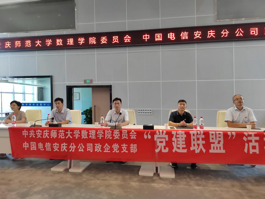 8月13日,数理学院党委与中国电信安庆分公司政企党支部共同举行“党建联盟”签约仪式,切实发挥党建引领、推动和保障作用,进一步构建“资源共享、优势互补、互相促进、共同提高”的党建工作新格局。数理学院党委书记陆健、院长申传胜,安庆电信副总经理张胜利、政企部等部门负责人及部门党员、入党积极分子共同参加签约仪式。