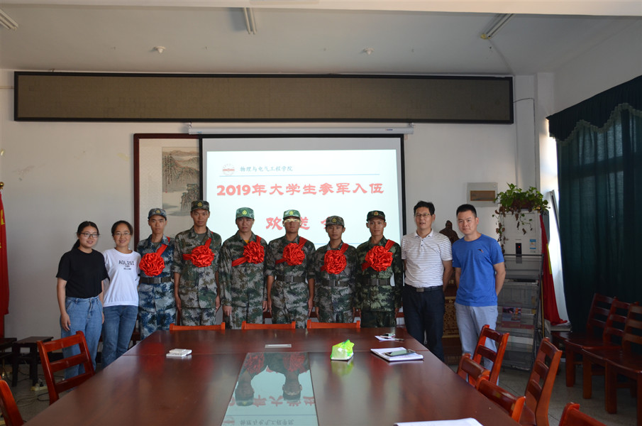 携笔从戎书青春本色,建功军营圆强国梦想。9月10日上午,物理与电气工程学院在学院会议室为今年参军入伍的大学生举行欢送会。学院党委书记江贵生和班级辅导员参加了欢送会。