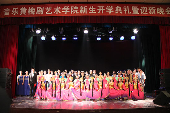 9月28日晚,音乐、黄梅剧艺术学院2013级新生开学典礼暨迎新晚会在音乐厅隆重举行。该院党总支书记刘燕、院长荀安华、副院长刘蕊、副书记陈银凤出席了典礼,并和学院教师、2013级全体新生以及老生代表300余人一同观看了晚会。