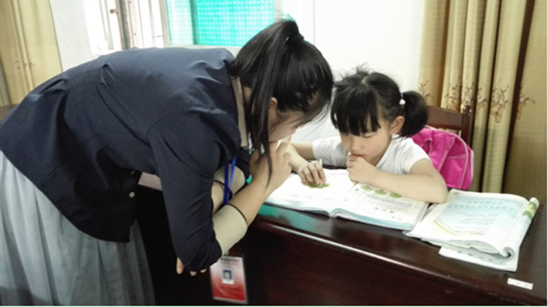 从周一到周五每天下午四点二十分,不论天气如何,总会有志愿者在英语角集合然后步行前往大观区居委会。到达之后,每个人都会被安排一些任务,如烧开水、清扫教室、接孩子、辅导作业,任务有序地进行着。孩子们甜甜的一句“哥哥姐姐”就化解了志愿者们所有的疲惫。一位家长杨女士说:“我家小女儿在家写作业特慢,我和他爸每天上班到很晚,几乎抽不出时间接她,奶奶也管不住她,在这挺好的,你们还可以教她写作业,我挺相信你们志愿者的,安全问题我们也不用担心了。”杨妈妈还嘱咐志愿者:“千万要严厉点,还要有责任心。”
