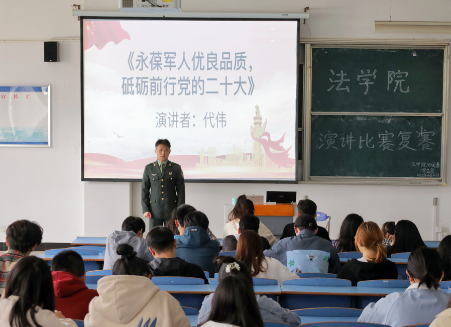“愿以吾辈之青春,捍卫盛世之中华!”……4月16日,法学院开展“讲中华好故事,做时代好青年”主题演讲比赛复赛。共16名选手参加比赛,吸引近百名同学观看。