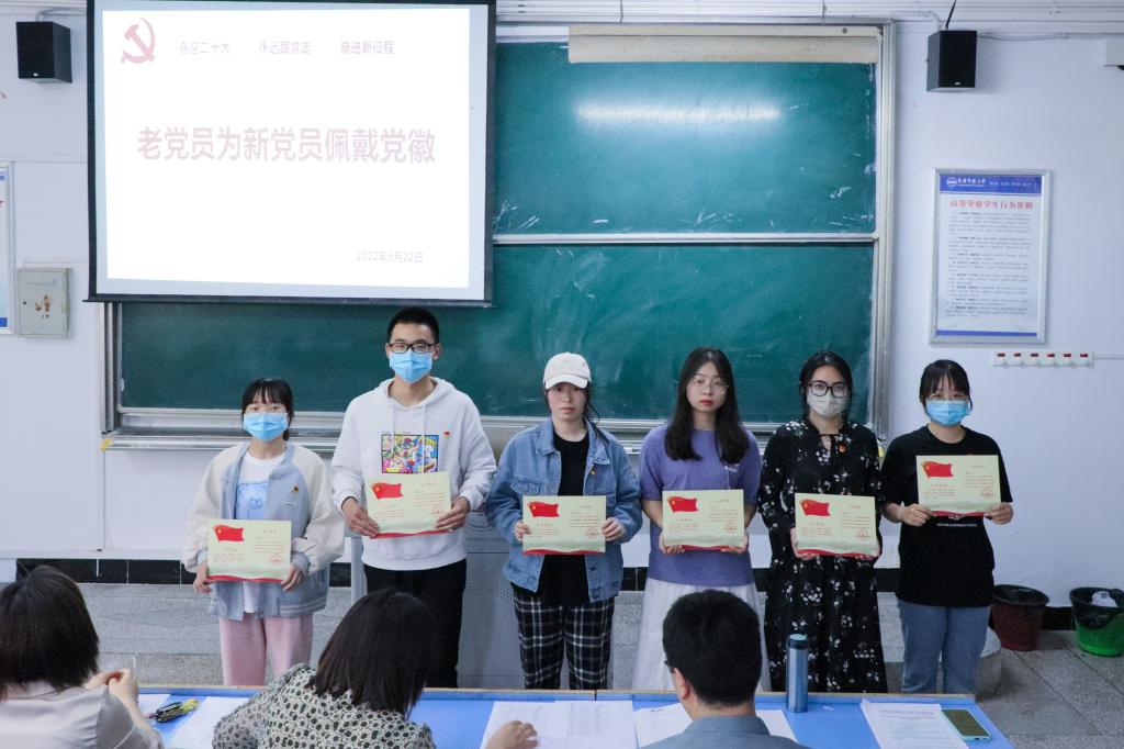 “我志愿加入中国共产党,拥护党的纲领、遵守党的章程……”全体毕业生党员重温了入党宣誓。再由周永然等毕业生党员代表为肖丹泓等新党员佩戴党徽、颁发政治生日提醒卡。化学专业2018级(2)班的学生童尧表示,作为一名毕业生党员,在为新党员佩戴党徽、颁发政治生日卡的时候,内心感慨万分,我相信,在这一届届新老传承中,学院、学校的明天会更美好。化学专业2019级(4)班的学生肖宗镜作为一名新党员,脸上洋溢着骄傲和喜悦,“今后我一定会向优秀的毕业生党员学习,接好、传好再出发的“接力棒”,时刻不忘党员身份,在各方面发挥先锋模范作用。”