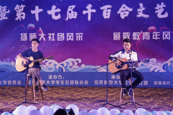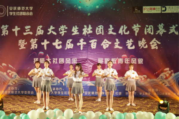 当天,各社团欢聚在一起,在千百合的舞台上各展风采。大学生瑜伽协会带来的双人瑜伽,动作淡然优雅又不乏力量。传媒学院学生会和大学生主持人协会带来了一场别开生面的杯子舞《Cups》,让演员们配合默契,节奏感强,创意新颖,让大家感受到了大学生的青春活力与独特创意。随着音乐的缓缓流出,心翼手语协会的女孩们带来的手语表演《追光者》让人沉醉,她们用双手诉说话语,表达真挚的爱,传递出追梦的希望。龙睛读书社带来的诗歌朗诵《青春万岁》激情澎湃。