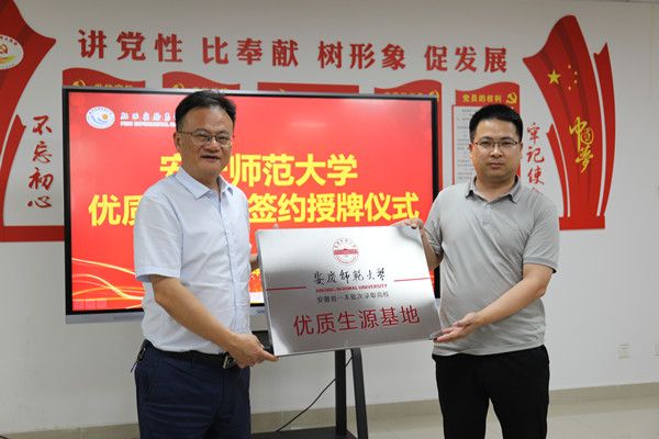 吴健代表学校与肥西实验高级中学签订了协议书,并授予该校“beat365英国官网网站优质生源基地”牌匾。