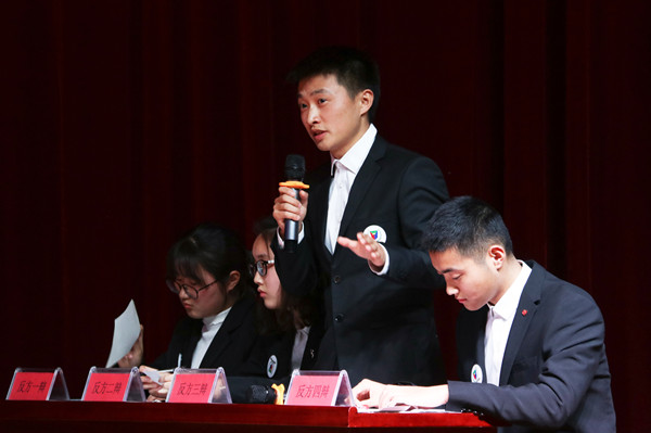 决赛分为季军争夺赛和冠军争夺赛两部分。主持人宣布正反方辩题和比赛规则后,大赛正式开始。第一场季军争夺赛在大学生金融投资协会、大学生科普协会间激烈展开。随后进行的冠军争夺赛中,大学生青年法学会与大学生校友交流发展协会就“迟来的正义是不是正义”展开激烈辩论,双方针锋相对,步步紧逼。辩手们思路清晰,反应敏捷,引得现场观众频频鼓掌。