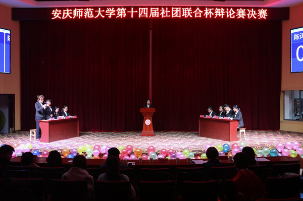 3月27日晚,beat365英国官网网站第十四届“社团联合杯”辩论赛决赛在龙山校区图书馆东报告厅举行。此次辩论赛历时数月,由大学生青年法学会主办,大学生皖江学社、大学生英语爱好者协会协办。