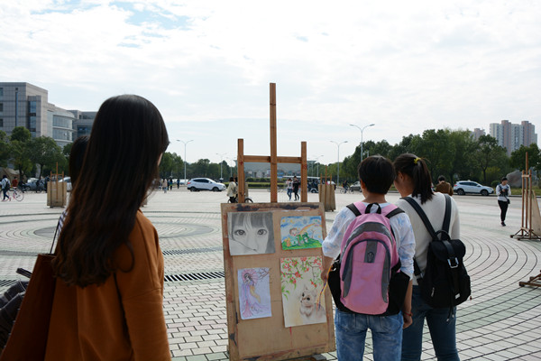 淡雅的水粉画,白描的铅笔画,几可乱真的素描,苍劲有力的毛笔字……10月13日,教育学院、物理与电气工程学院在敬敷广场联合举办的新生书画展。活动现场,一幅幅精美的书画作品吸引了来往的学生驻足观看。