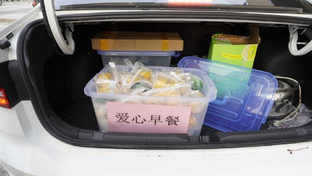 23日清晨六点半,当大多数学生才刚刚从睡梦中苏醒时,该班8名志愿者就早早到达了西苑食堂的后勤厨房开始打包早餐,不一会儿,30份早餐打包完毕放在了事先准备好的塑料保温箱里。为了能够让“校园守护者”们吃到热气腾腾的早餐,班长袁世博同学提前联系好了西苑食堂徐经理,徐经理听说了同学们的建议,不仅提供了早餐,还特意安排了车辆进行运送,同时打听了安保人员们的上下班时间,以便同学们顺利把爱心早餐送到每位守护者的手中。
