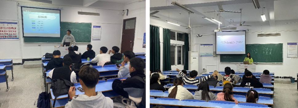 主讲学生讲解生动有趣,课堂展示的PPT还附带了一些心理压力的测试题。在谈论到压力的利弊时,主讲学生以真实的案例形象地说明了压力过大的危害。本次课堂也重点强调了应对压力的正确策略,在课堂的最后,主讲人还列出了一份解压的自我训练方法。课堂丰富有趣,同学们兴致颇高,在互动环节,学生就如何对待压力踊跃发言,和主讲学生积极沟通,课堂氛围融洽。