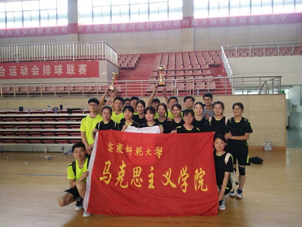 6月10日下午,历时四天的学校综合运动会排球联赛在体育馆落下帷幕。经过激烈的角逐,马克思主义学院排球队分获女排冠军和男排亚军。