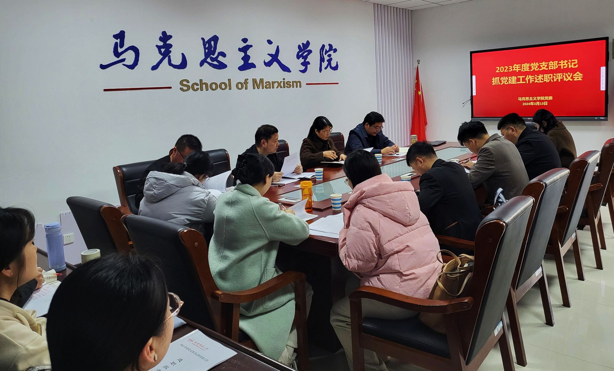 3月13日,马克思主义学院召开2023年度党支部书记抓党建工作述职评议考核会。学院领导班子、党委委员、各党支部书记、师生党员代表等参加会议。会议由学院党委副书记、纪委书记邹斌主持。