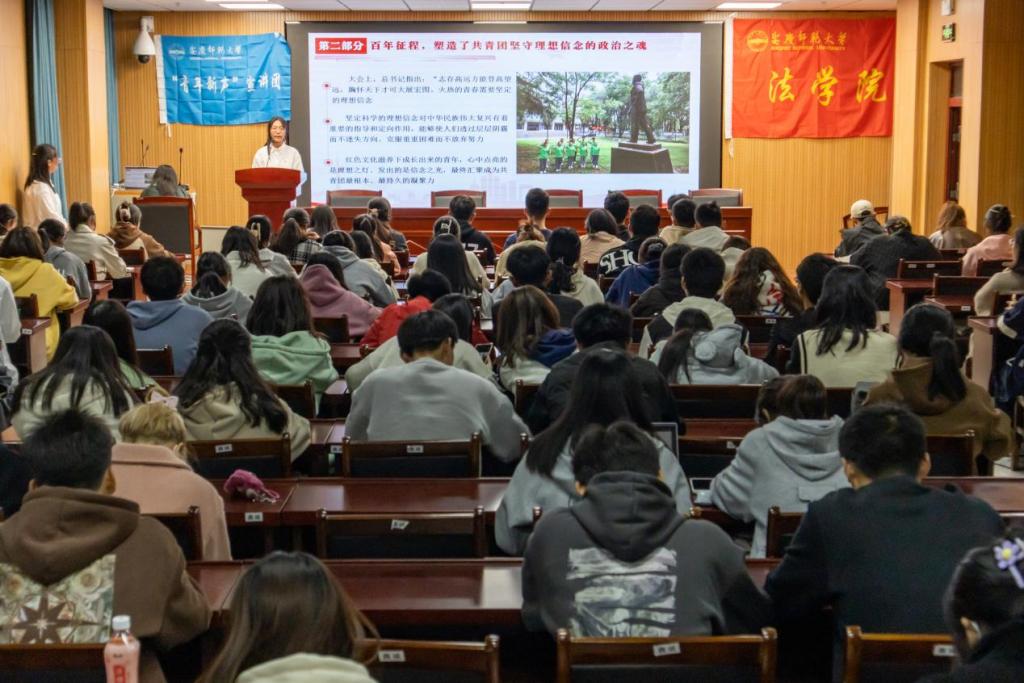 近日,法学院邀请校“青年新声”宣讲团开展党的二十大精神主题宣讲。100余名新生参加宣讲会。