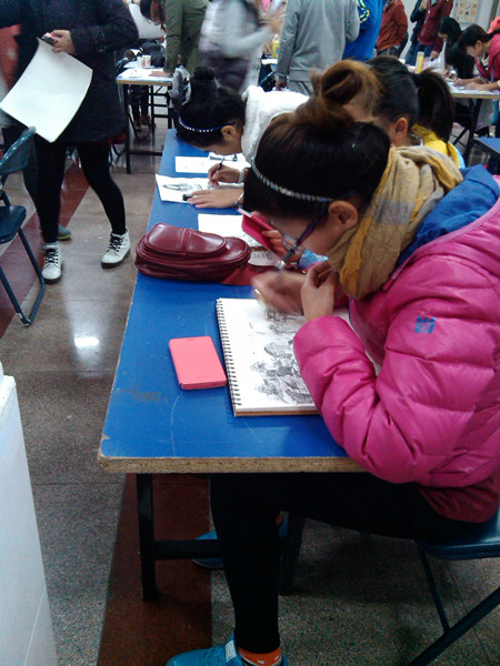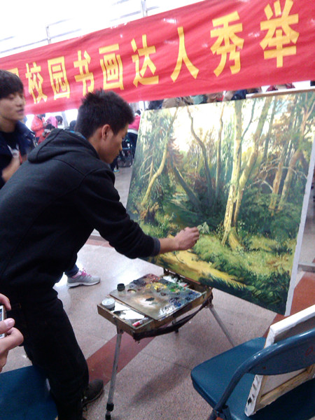 长达月余的前期准备,800多人的报名参与,使本届“书画达人秀”变得与以往不同。活动负责人杨然表示,很多人都是自愿报名参加的,谈及活动的前期准备,她深有体会:“准备时间长,花费了很多精力,今年特别的是我们还贴出了喷绘式海报,宣传力度广而大,没想到参加的人这么多,活动举办的很顺利,大家的积极性如此高涨,感到很欣慰!”(学生记者 姚俊萍)