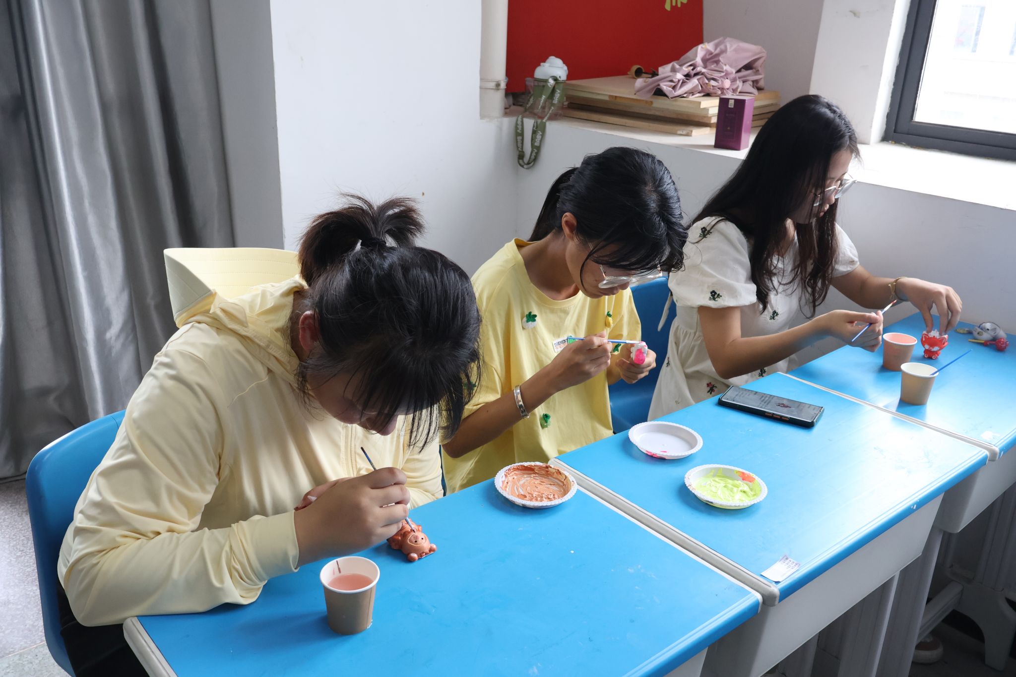 涂色石膏娃娃能够让学生们在休闲娱乐中体验生活美好,在色彩的晕染中逐步释放自己的内心压力。“安静的创造氛围,文艺的表达形式。”商务英语专业2021(2)班的施奕表示,自己很喜欢这种游戏氛围,能够让她沉浸式体验艺术创作。