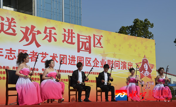 3月5日下午,音乐学院团总支青年志愿者艺术团“送欢乐进园区”慰问演出在怀宁县工业园举行。怀宁县委常委、开发区党工委、纪工委、音乐学院党总支副书记等出席并观看演出。