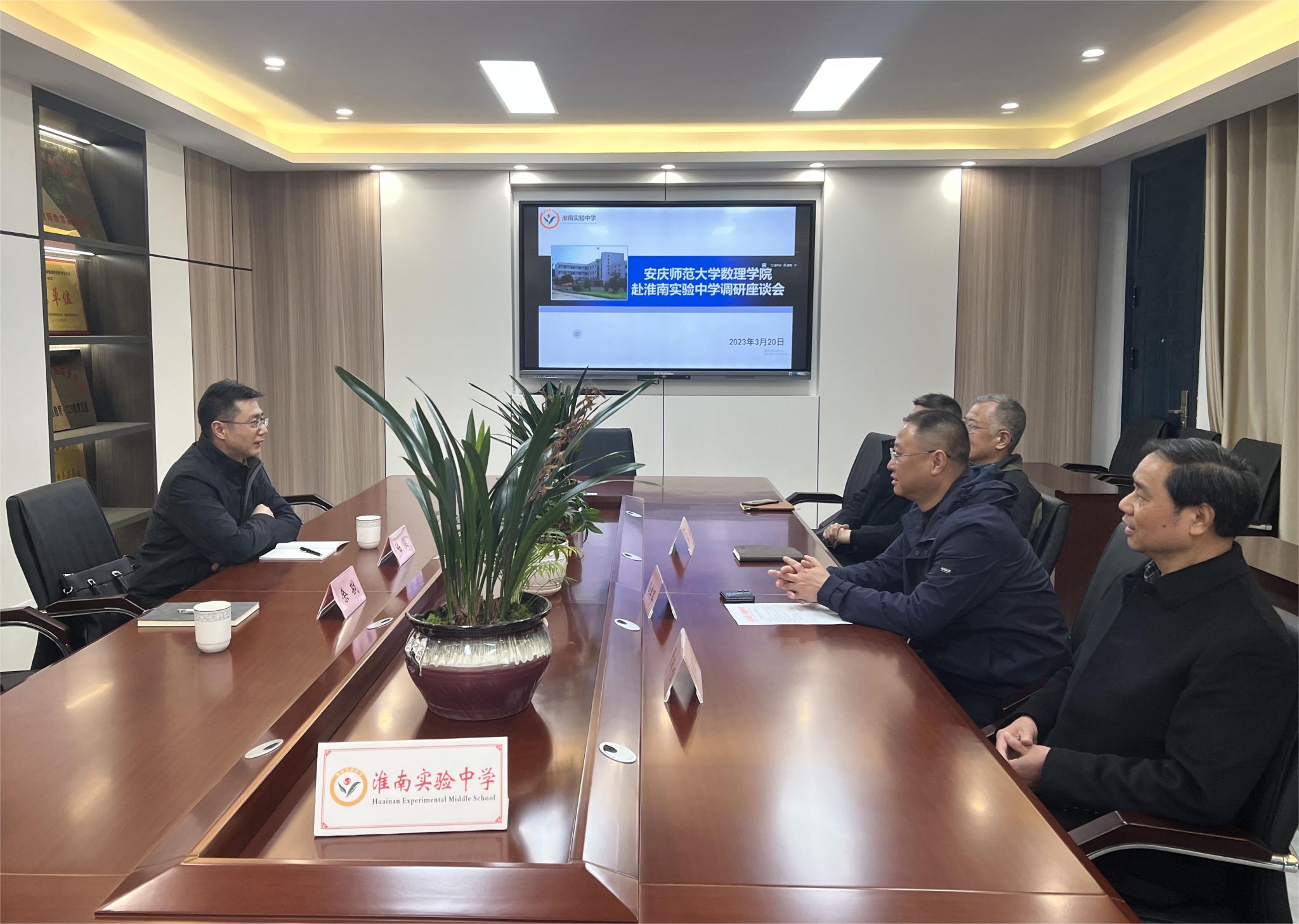 3月21日,数理学院党委书记陆健一行先后赴安徽理工大学数学与大数据学院和淮南实验中学调研交流,数学与大数据学院院长赵前进和淮南实验中学校长马典军接待陆健一行。