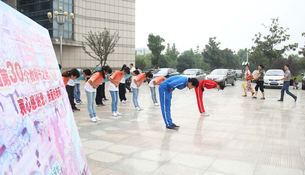 此外,校学生会还在微博上发起#感谢恩师晒爱送祝福#活动,每位学生都可参与进去,晒晒自己与恩师的合影,传递浓浓“师生情”。除了学生会举办的祝福活动外,多个班级都自发在上课前,全体起立鞠躬,并送上“祝老师节日快乐”的话语。第一节课刚到教室,就收到全班同学齐声的祝福,“谢谢学生们,我觉得做一名老师很幸福。”冯慧敏老师笑着说。(文/学生记者 胡琦 高燕 图/学生记者 程江涛)