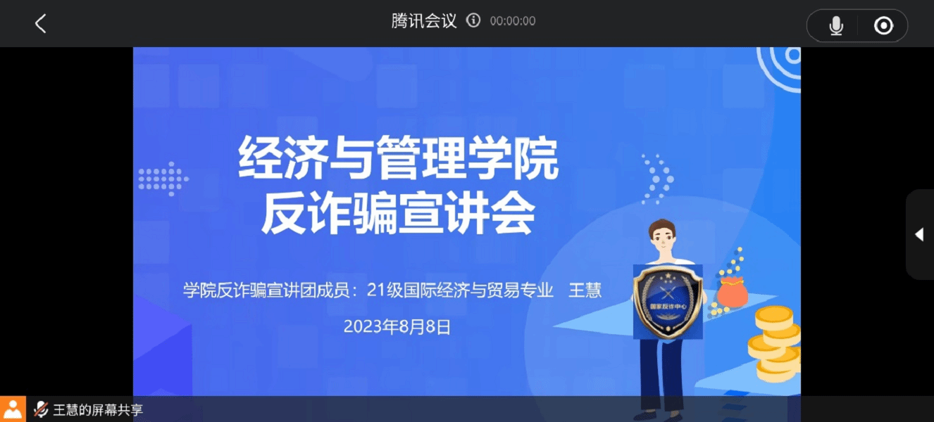 近期,经济与管理学院成立由学生党员组成的防诈骗宣讲团,面向学院全体在校生开展线上反诈骗宣讲。