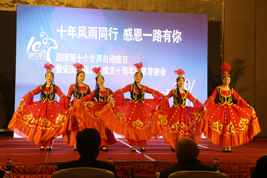 “花儿为什么这样红,为什么这样红……”会上,音乐学院的6名大学生们表演了新疆舞《花儿为什么这样红》。音乐学院的袁帆老师表示,“这些孩子们像花儿一样美丽,希望他们的未来是一片光明的。”