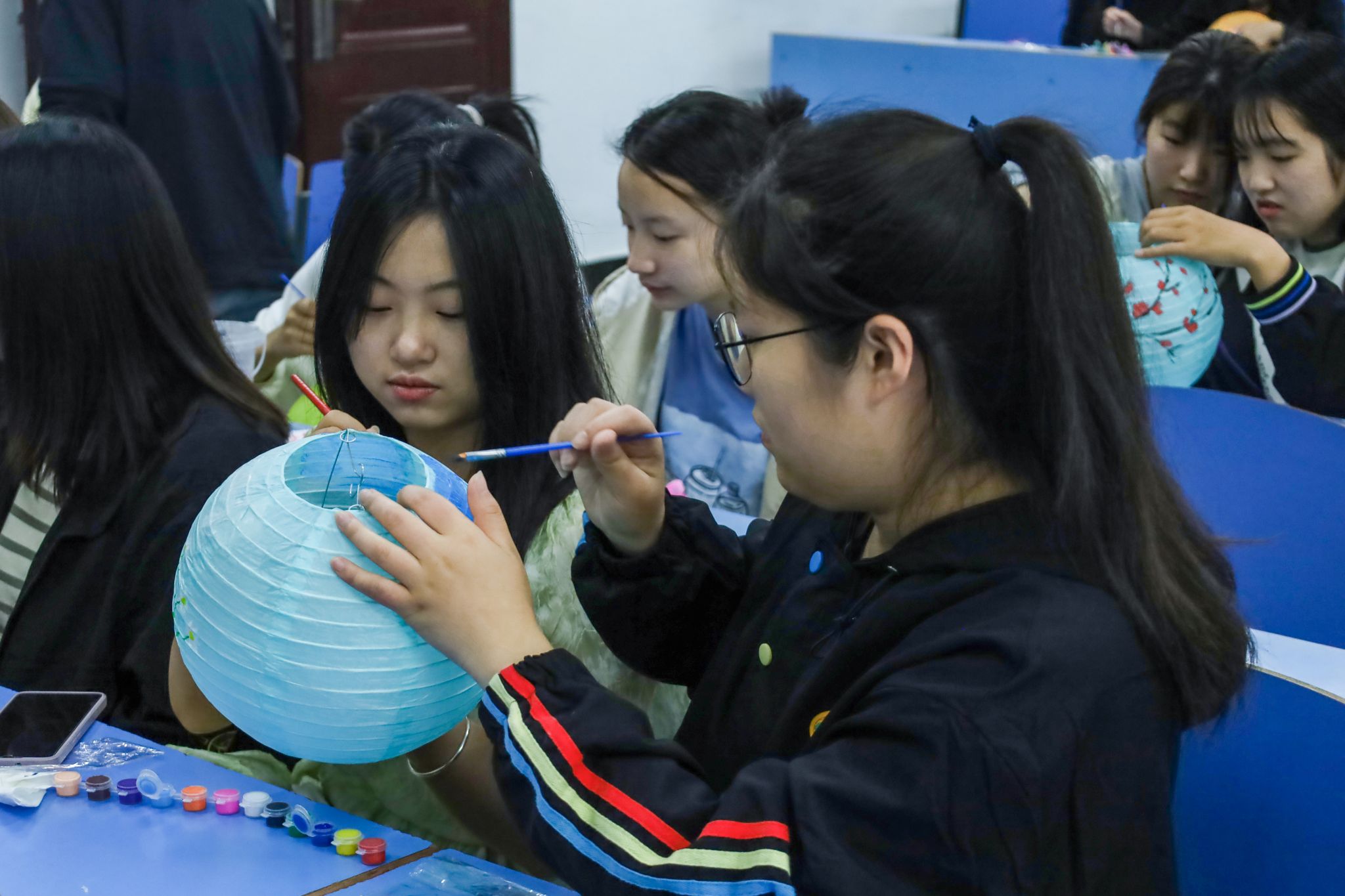 洗笔蘸墨、轻展灯纸、笔锋游走……参与学生对照图样,在灯面上临摹出自己心仪的图案,并书写个人理想,以书画为媒介,灯纸为载体,描绘青年对未来的规划蓝图。