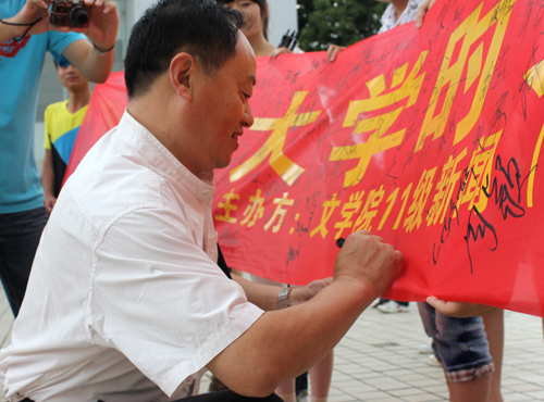为了引导同学们珍惜大学时光,认真读书,勤奋学习,努力钻研,掌握过硬的专业知识,积极投身到学校的学风建设活动中来,文学院2011级同学策划开展学风建设签名活动,经过十多天的准备,活动于5月31日早自习时间,在敬敷广场正式举行。同学们打出了“珍惜大学时光,营造良好学风”的签名横幅后,前来上早自习和上课的同学积极响应,他们纷纷拿起签名笔,在横幅上签下自己的名字。为了方便签名,同学们密切配合,小心翼翼将横幅牵扯、平展,主动为签名者拿手中物品,以方便签名者顺利流畅签名。来上第一节课的老师们看到这个活动,也认为非常有意义,许多老师拿起签字笔,签名支持这项活动。活动结束后,同学们又把签名横幅悬挂到安苑餐厅附近的宣传栏上,倡导更多的同学珍惜时光,勤奋学习。
