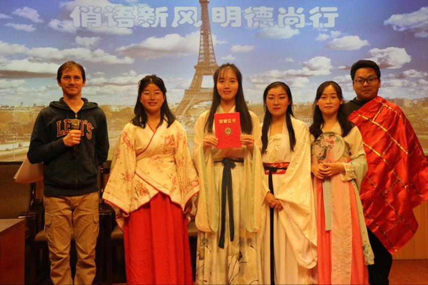 4月8日至15日,由外国语学院法语专业学生党支部和院学生会联合举办的首届“法语周”活动圆满举行。法语专业教师高峰、汪琳、舒青、曾彩虹、杨华及外籍教师Pierre担任此次活动周赛事评委,法语专业各年级学生积极报名参加。